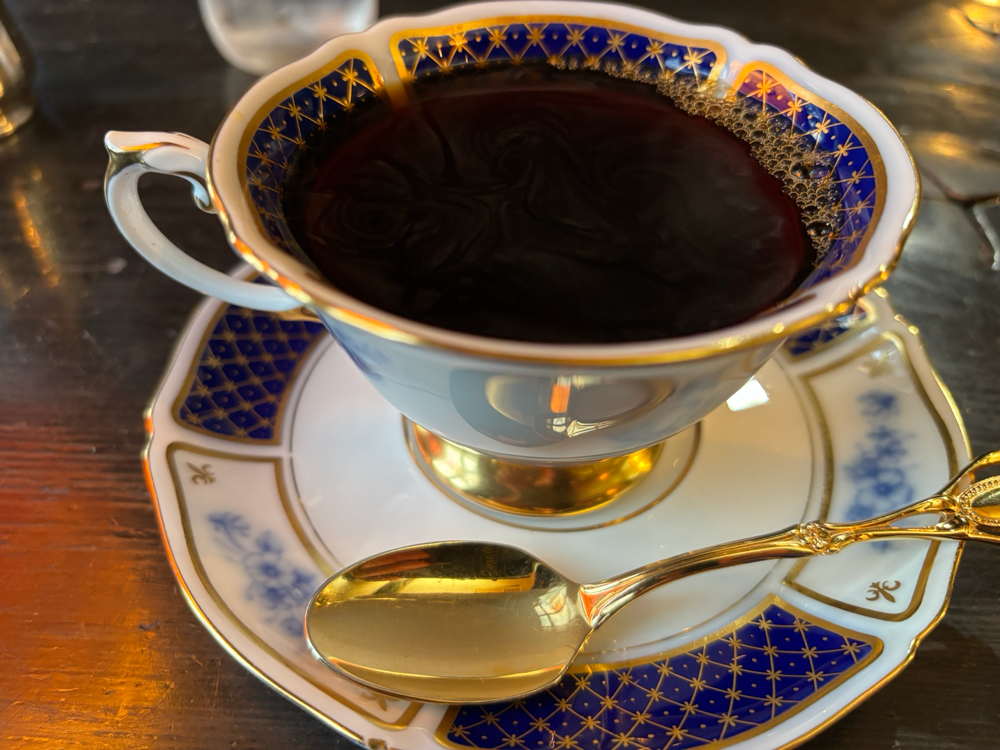 苦味の効いた炭火焼き焙煎のコーヒーは私好み。