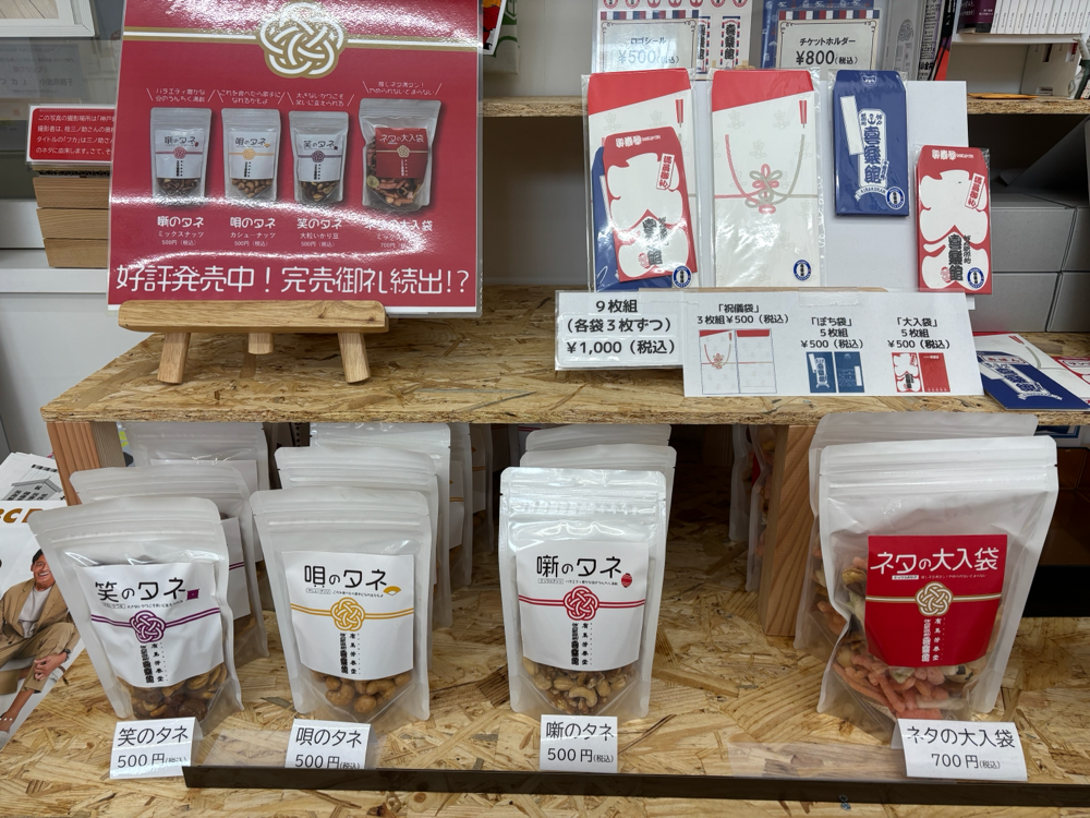 「笑いのタネ」「唄のタネ」「噺のタネ」と言うスナック豆のお土産。